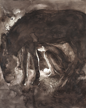 De la paume, étaler l’encre qui se diffuse là où on ne l’espère pas.